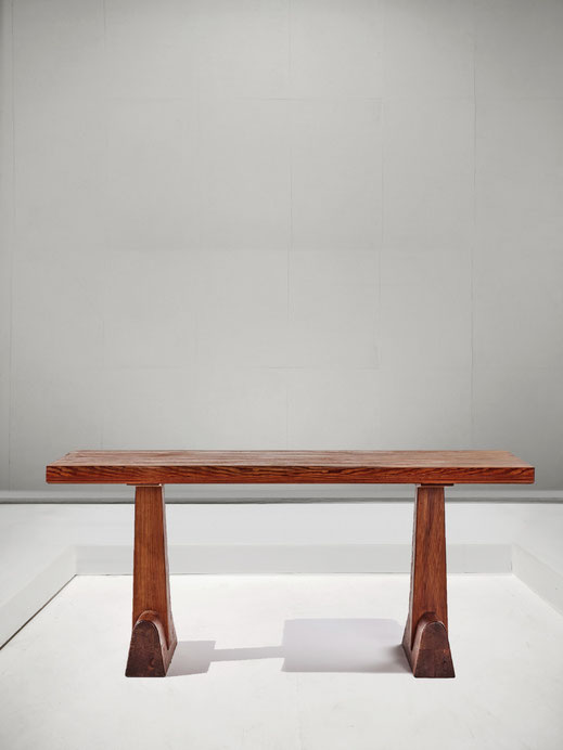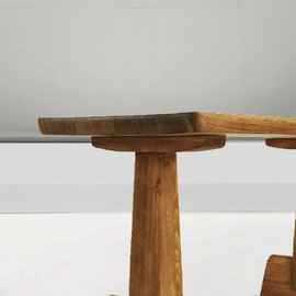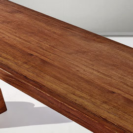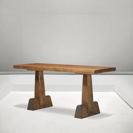 Table in good stability and overall condition, showing signs of wear and some scratches and patina.